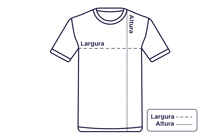 Largura: A medida é feita na região do tórax, pois é região do corpo que mais precisa ser priorizada na hora de escolher o tamanho da sua camisa. Use uma fita métrica para medir de uma costura a outra.